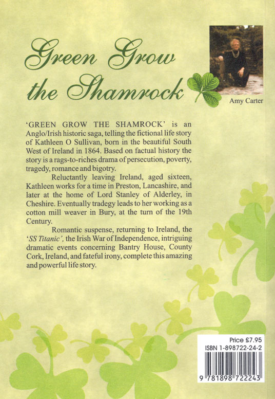 Kathleen 0 Sullivan. lay wide eyed on her bed listening to the dawn chorus, this first day of July, eighteen hundred and eighty, promised to be one she would never forget. ITer shapely young body, newly blossomed into womanhood, rebelled against the heat as she perspired profusely, clothed as she was in a long sleeved flanellette nightgown. She shared a loft bedroom of the small farm cottage with her younger sisters. Ten year old Pileen and Sheelagh aged eight lay together fast asleep at the other side of the room,, three year old Molly slept beside her. James,, her thirteen year old brother shared the other loft bedroom with her T)arents. ITer father, Daniel 0 Sullivant a man of his word, had promised to take James and herself to see the s,ea for the first time in their lives. Kathleen was looking forward with joyful anticipation to the long journey, twenty miles it would be, over the mountains from their home village of Tilgarvan to Bantry Bay, that glorious part of God's earth in the remote south west corner of Ireland. Kathleen had never been more than, six miles away from er ome an her young heart leapt with excitement as she thought of seeing her C,'randmother 0 Sullivan for the first time since her Grandaddy had died seven, years ago. It was then that her Grandmother had gone to live with her widowed sister at Ballylickey on the shores of Pantry Bay. Gently lifting herself to a sitting position,, careful lest she should disturb Tvlolly,, she leaned over and deftly lifted a lock of hair from her sister's forehead. 'lill my children be beautiful like Molly she mused. I'll be sixteen in October, I wonder if I'll be married when I'm eighteen like my Mammy ideas?' The shrill of the first cock crowing disturbed her musings. G'etting out of bed she stood up and removed the offensive nightgown glad to be rid of it. Quickly she reached for the new brown cotton dress she had 'so painstakingly and skilfully made herself. It had a plain bodice, a neckline that was not too high like her other dress, short puff sleeves and a long full skirt. She vias justly proud of her needlework. Quietly she crossed the room, passed through the door to the small landing and descended the wooden steps with nimble bare feet to the kitchen below. Unlike the divided loft., the ground floor of the cottage was all one room. The back door was near to the bottom of the steps,, the front door directly opposite. The two small windows allowed very little light to penetrate beyond the thick stone walls.-n open fireplace with arched chimney breast almost filled one side of the room and blocks of peat and logs were piled high at each side of the hearth. A,,s Kathleen came down the steps her first thought was for the nine bonhams lying in the corner with the sow. Were they all alive? Yes they were. "You.lve been a good mammy not lying on any of your babies in the night" she commended the sow with a sigh of relief. Recause the weather was so hot the top half of the back door had been left open all night, she picked up a pail and a milking stool and pushed o-Qen. the bottom half of the door. Walking outside all her senses drank in the beauty of the familiar scene. The rock strewn rugged Kerry mountains, silhouetted against the advancing golden sunlight rose up like brown,. green and grey sentinels into the cloudless blue sky and formed the lush green valley through which flowed the clear sparkling waters of the river Roughty. A white exist lying low across the valley induced, in the early morning stillness,, a sense of unreality. Delighting in the softness beneath her feet of the dew laden shar.r.rock with the tiny bright green leaves she walked,to the small field where a black and white cow stared at her with a solemn long face "You can't be sad to-day Dolly" she said to the cow mischievously as she placed the pail beneath the udders. The beast shook her head to remove the fly pests from around her eyes. "Yo Dolly,. you mustn't be sad to-day" she repeated as she positioned the stool and started the milking. She began@to think of the things she was going to take for the journey, the oat cakes, she must not forget those and the bastable bread and some for Grandma, and the crochet mat she had made. Tt seemed impossible to believe that she was going to stay the night at Ballylickey, it would be the first time in her life that she had slept away from home. She stared at the milk rising in the pail i,@ihilst resting her head against the belly of the cow, in her happiness she stroked her forehead affectionately along the warm soft hide. She watched her brother James as he came out of the cottage to fetch some water from the well, he was a handsome boy with dark curly hair who worked hard orr the farm being keen to learn all the skills his father was able to teach. ITe walked over to the donkey and car to examine the harness as if wondering whether it would stand the strain of the long hard journey. VIT do hope Daddy will be more happy to-day' Kathleen thought, times are so hard and he has been worrying so much lately. She finished the milking and lifting the heavy -pail full of creamy milk she returned to her exuberant mood and kissed the cow on the side of